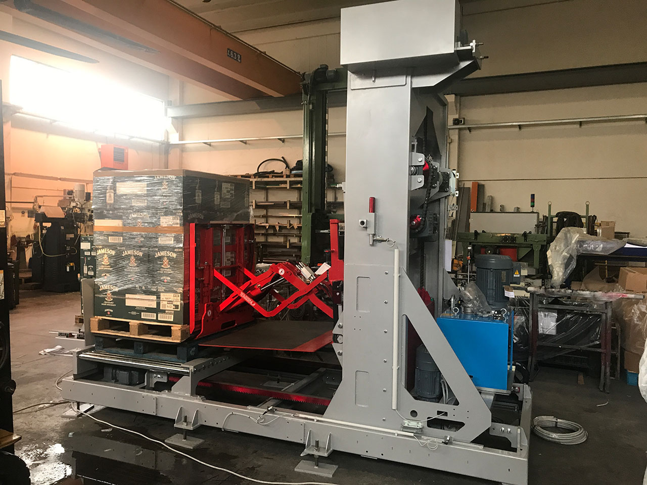Per realizzarlo siamo partiti da questa considerazione: ogni pallet occupa uno spazio in altezza di almeno 15 cm. Se il pallet non ci fosse si risparmierebbe il pallet che potrebbe essere riutilizzato e si guadagnerebbe molto spazio sui container usati per le spedizioni. Abbiamo così studiato un macchinario per rimuovere in maniera automatizzata i pallet, senza bisogno di muletti o operatori. Riteniamo che un sistema automatizzato come questo sia di grandissimo interesse perché consente di ridurre i costi aziendali. Inoltre, ottimizzare lo spazio sui container usati per la spedizione aiuta anche a ridurre l’inquinamento: aumentando il numero di prodotti all’interno di un singolo container, il numero di viaggi si riduce. Abbiamo quindi creato un prototipo per l’estrazione del pallet in modo completamente automatico, senza l’ausilio di nessun operatore e muletto. Abbiamo realizzato già il primo macchinario, venduto ad una azienda irlandese.